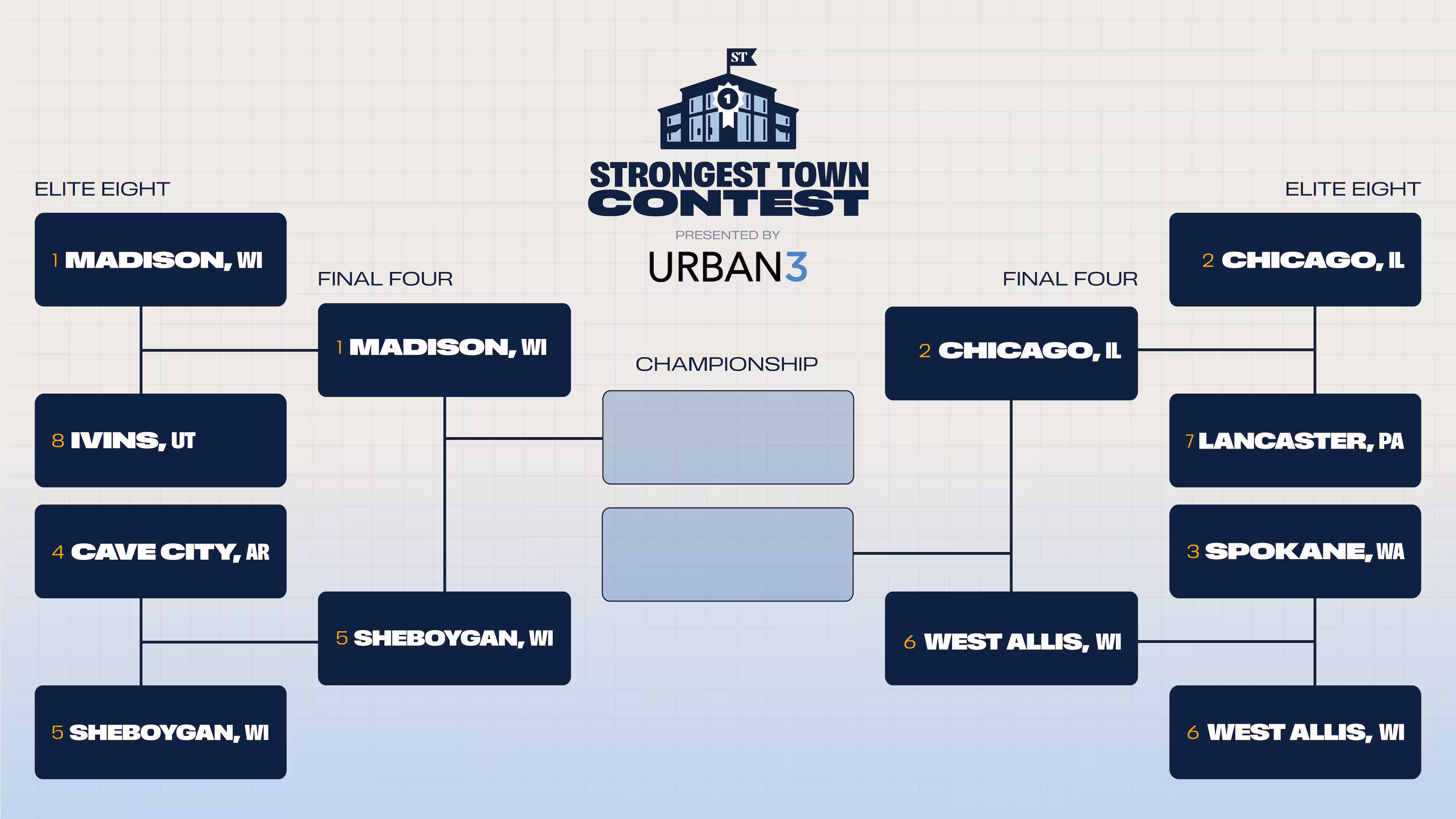 Four towns remain. You choose the finalists. Final Four voting closes March 27 at 9:00 a.m. CT.
